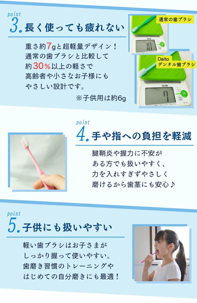 【★50%OFF 4/6 9:59迄】【メール便選択で送料無料】超軽量 Daito ダイト デンタル 歯ブラシ 20本入 フラット毛(ふつう/やわらかめ)/ 先細植毛(ふつう)/ 子ども用(フラット毛・やわらかめ)