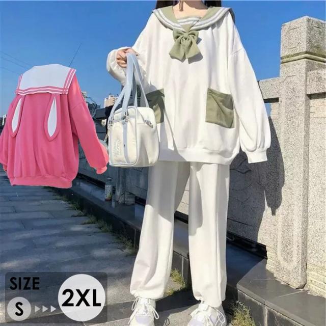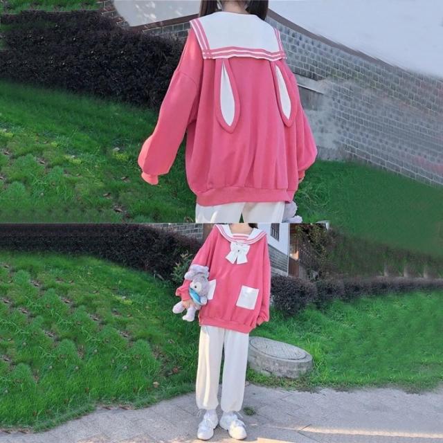 トレーナー セーラー襟 レディース トップス 長袖 オーバーサイズ ビックシルエット セーラーカラー フリル かわいい ロリータ ゆったり 楽チン キュート カジュアル 体型カバー リラックス ガーリー アニマル ブルー de004x0x0c0