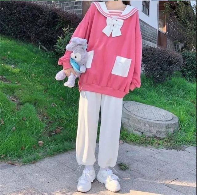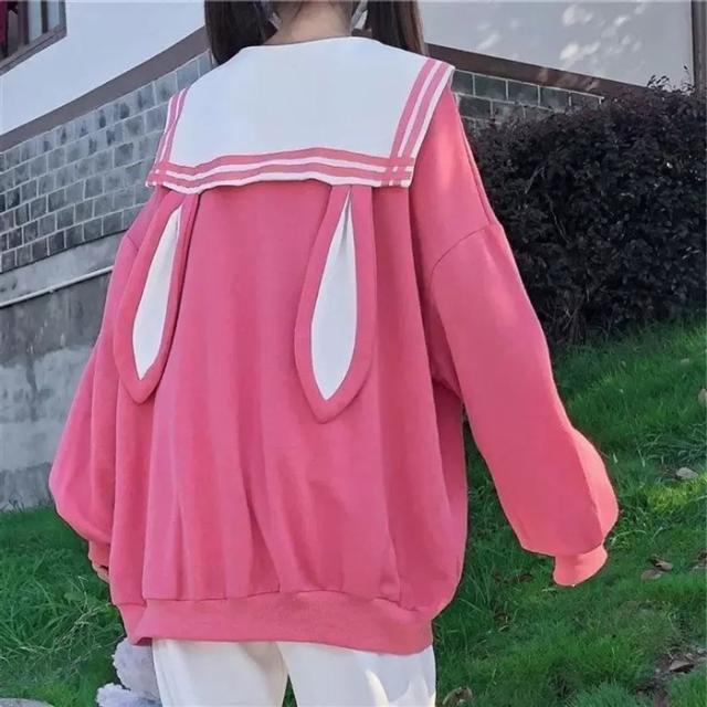 トレーナー セーラー襟 レディース トップス 長袖 オーバーサイズ ビックシルエット セーラーカラー フリル かわいい ロリータ ゆったり 楽チン キュート カジュアル 体型カバー リラックス ガーリー アニマル ブルー de004x0x0z7