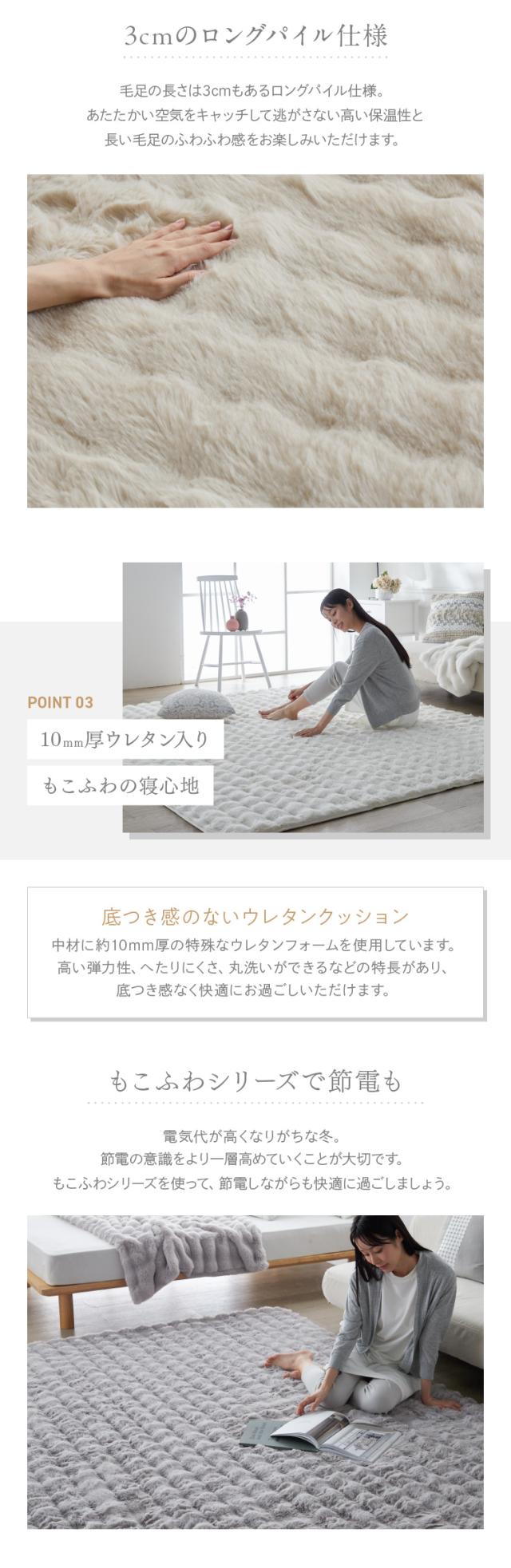 カーペット もこもこ ラグ じゅうたん もこふわラグ 130×190 全3色 柔らかい ロングパイル 暖かい ホットカーペット可 床暖房可 洗える おしゃれ ウレタンクッション 130cm×190cm 約1.5畳 滑り止め 冬用