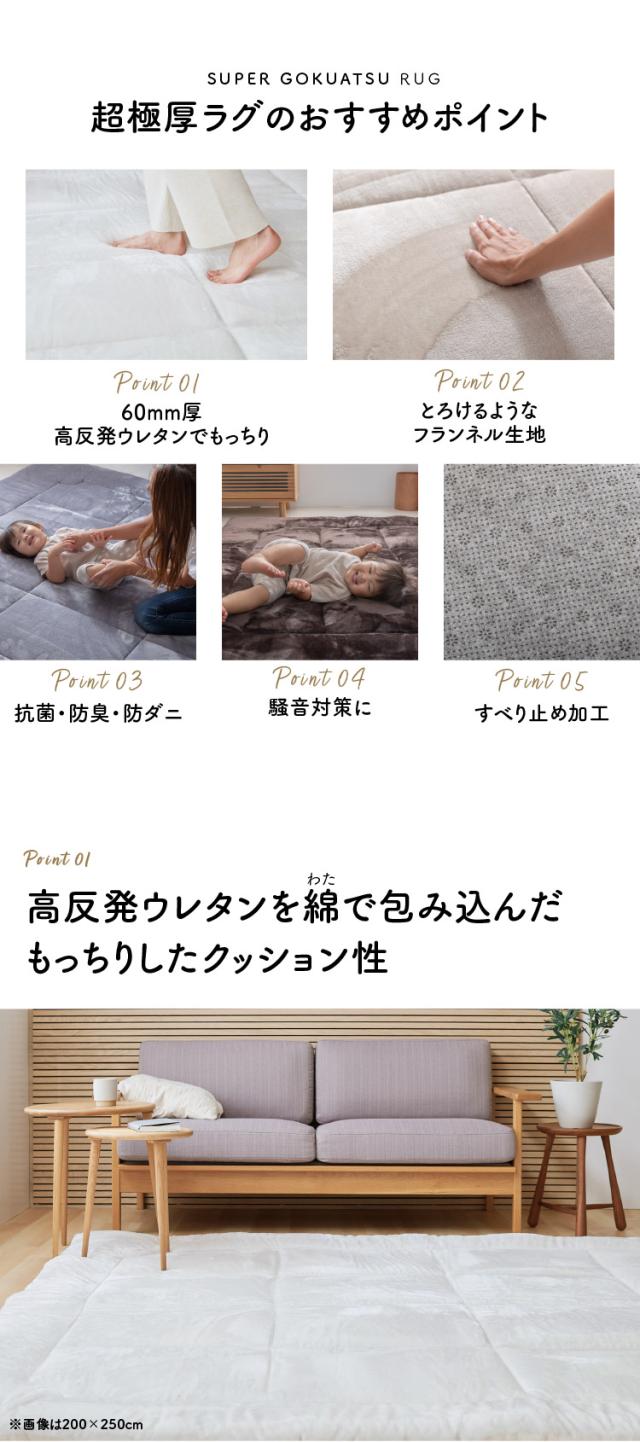 ★レビュー投稿でポイント還元★ カーペット じゅうたん 極厚仕立て 超極厚ラグ 185×185 全4色 高反発ウレタン 抗菌・防臭・防ダニ 防音 衝撃吸収 ホットカーペット可 床暖房可 暖かい 正方形 185cm×185cm 送料無料