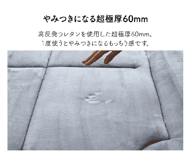 20mmの高反発ウレタンをポリエステル綿で包み込み、もっちりした踏み心地に。