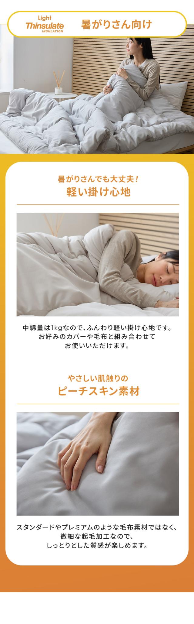 掛け布団 シングル 軽量 シンサレート掛布団 S(Light) 全2色 ライトモデル 暖かい 断熱効果 冬用 高機能中綿素材 かけ布団 シンプル 一人暮らし お手頃価格 洗える Light