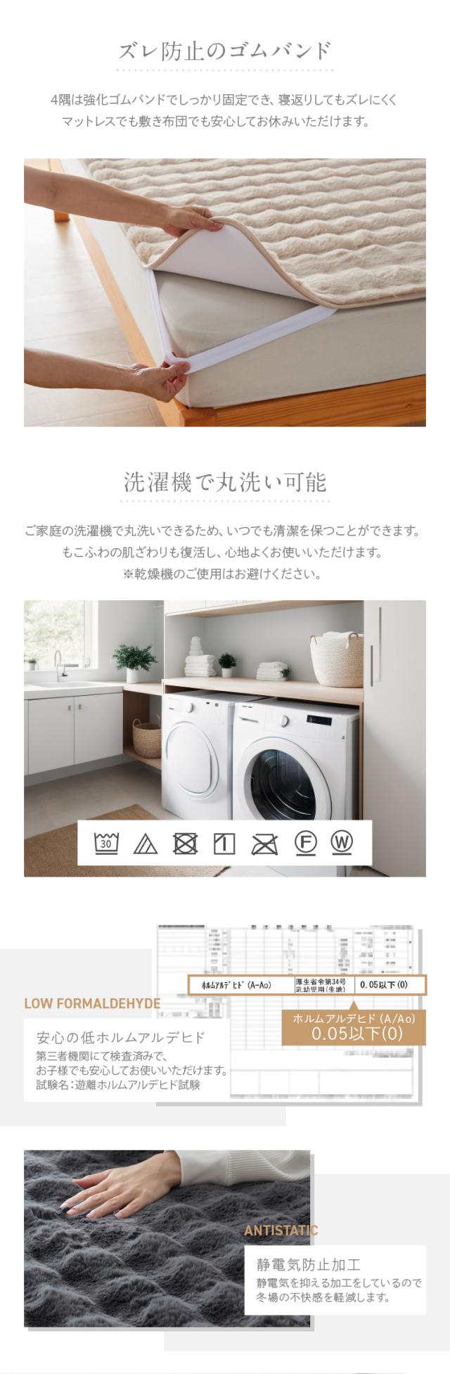 安心の低ホルムアルデヒド、静電気防止加工。