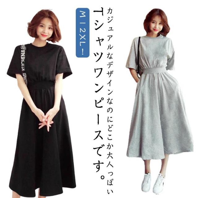 夏 ワンピース 送料無料 マキシワンピース 春 ゆったり Tシャツ 体型カバー レディース ロング 半袖 パーティー クルーネック 綿 韓国ファッション ドレス 着痩せ オシャレ リゾートワンピース きれいめ ロングワンピース 大きいサイズ
