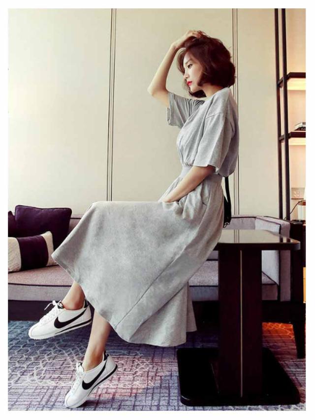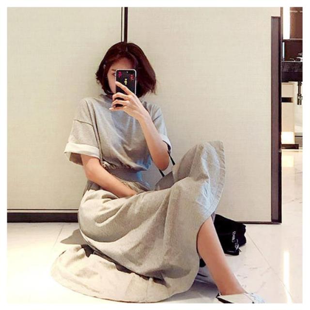 | M−2XL!カジュアルなデザインなのにどこか大人っぽいTシャツワンピースです。 様々なスタイルを楽しむことができ、着回し力抜群の1枚です。 ウエストゴムの位置が少し高めなので脚長効果も絶大です! | |