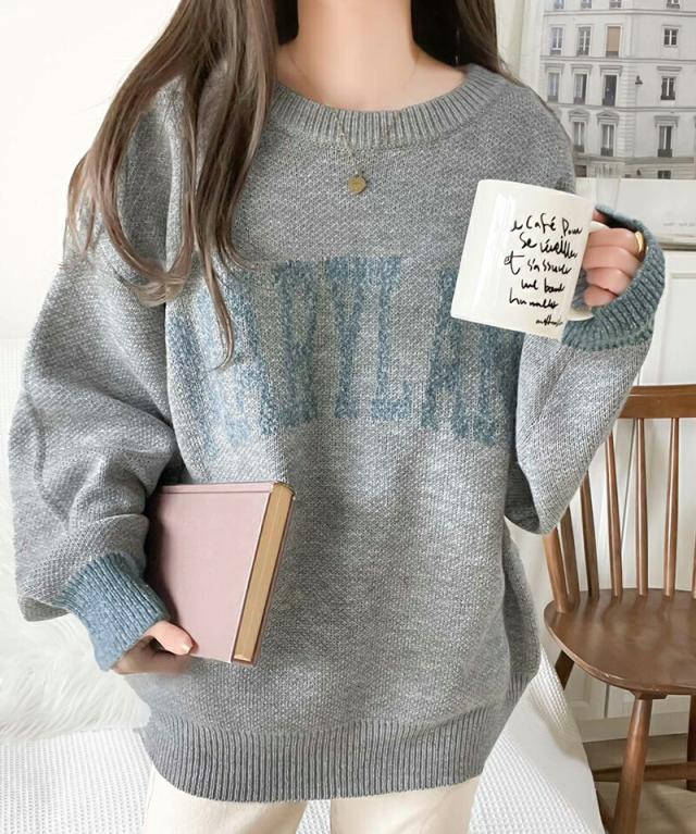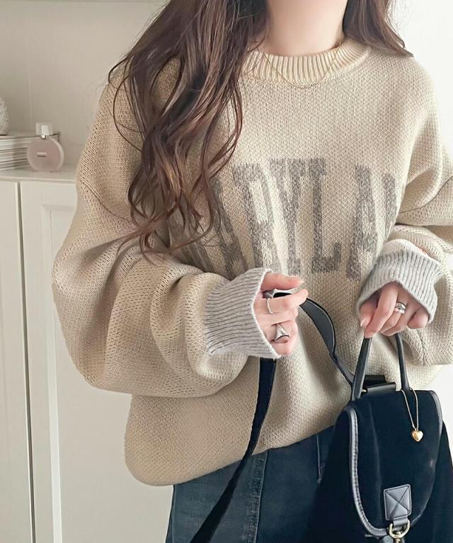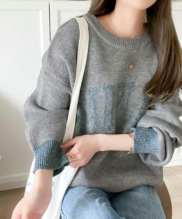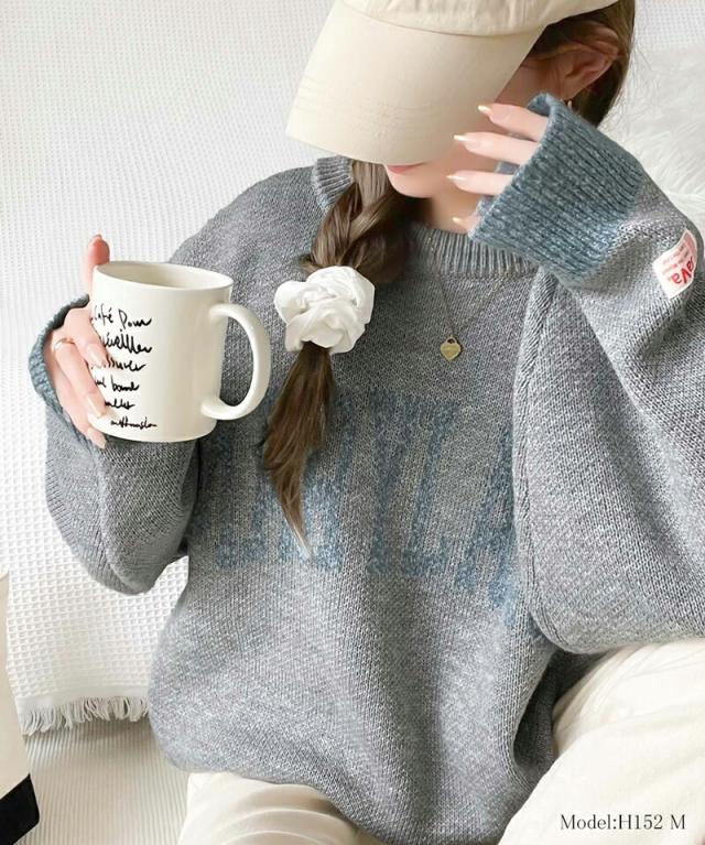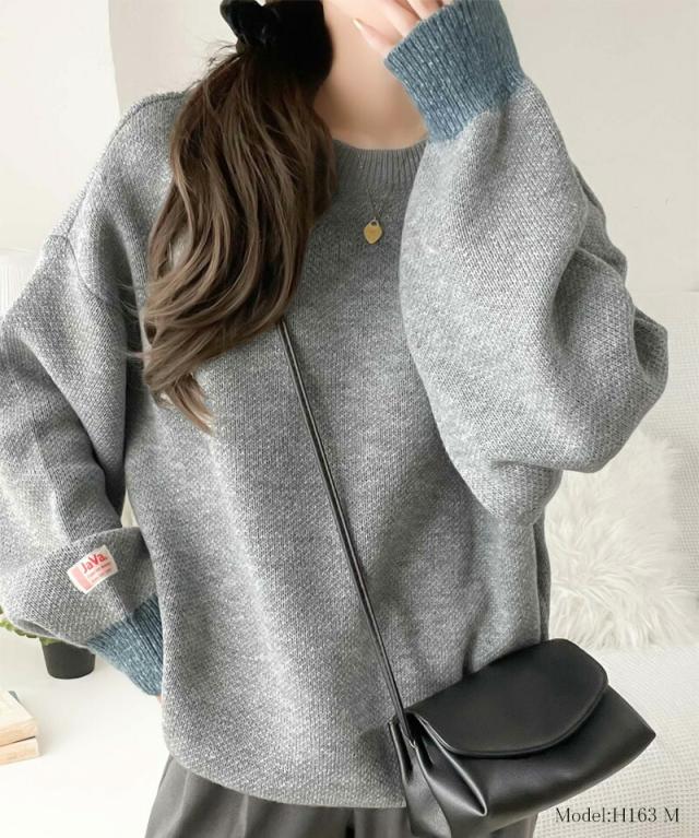 ★《JaVa ジャバコラボ》大人カジュアルの定番。2wayMIXヤーンバイカラーロゴニットプルオーバー★