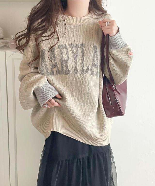 大胆に配したカレッジロゴが今っぽい着映えが叶う。