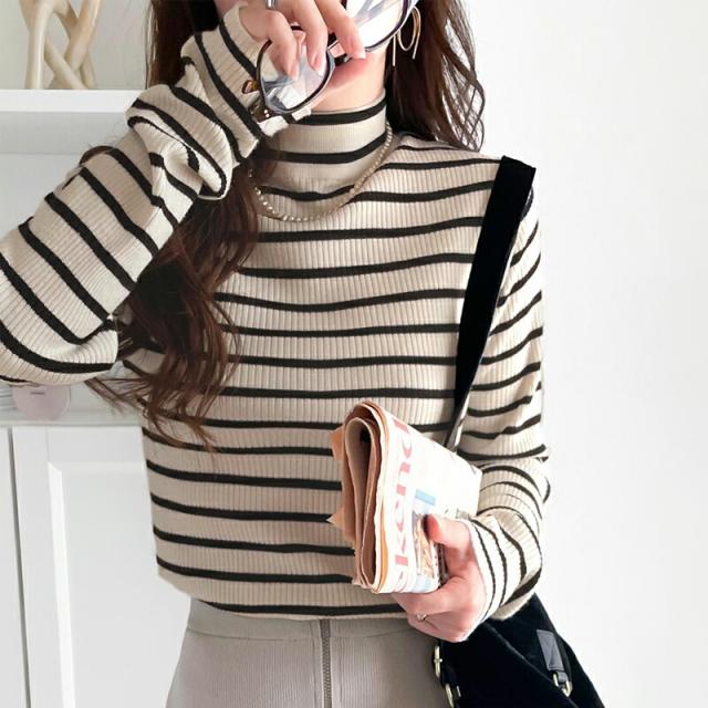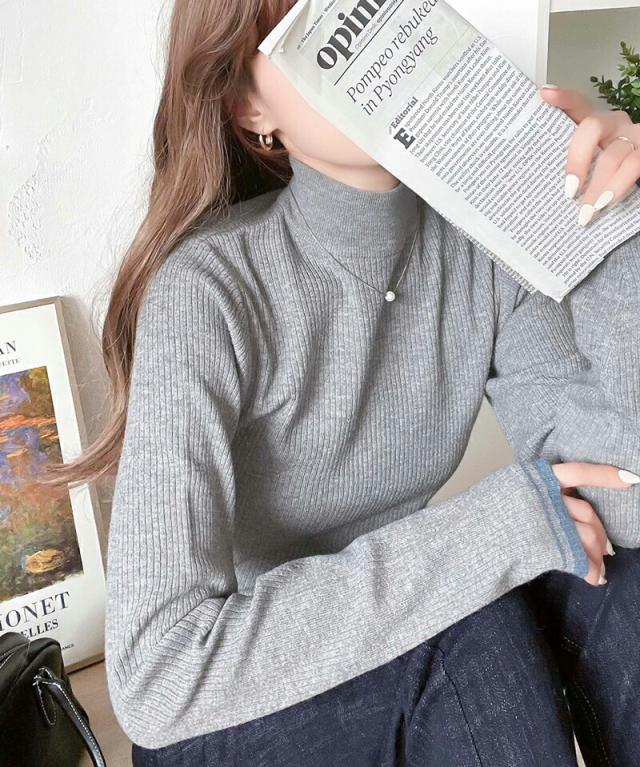 クラシカルエルフ冬新作 トップス ニット レディース 袖 W 配色 ハイネック リブニット シンプル 万能 インナー レイヤードコーデ 着回し もっちり 肌触り ロングシーズン ストレッチ 大きいサイズ 2024ss ce1020147