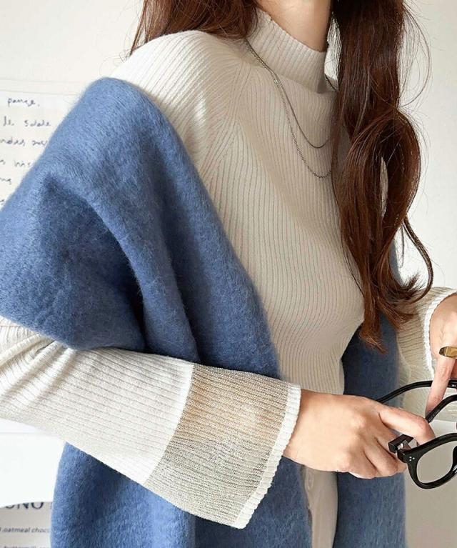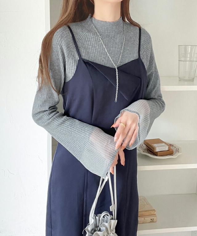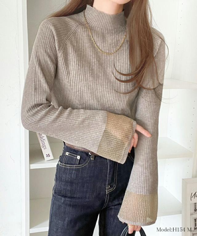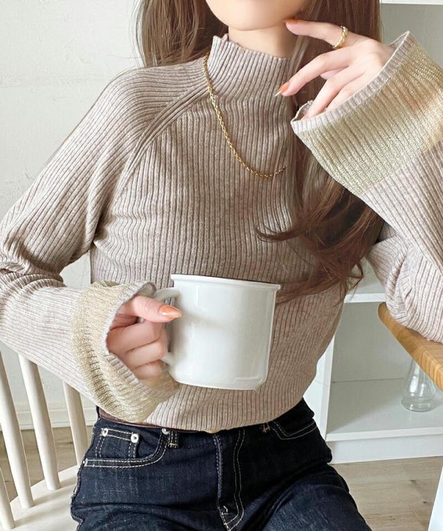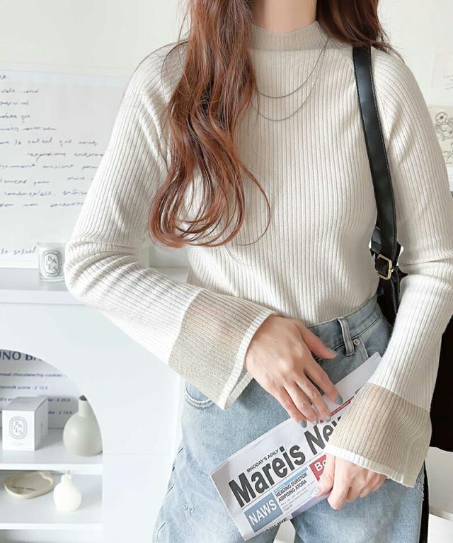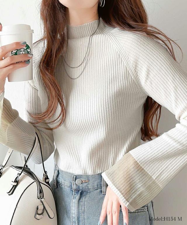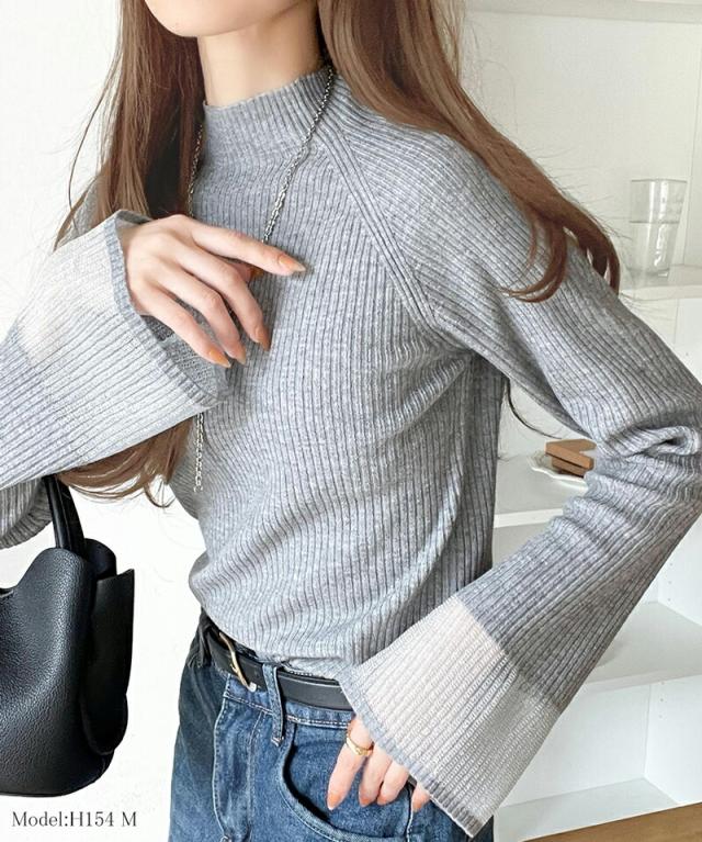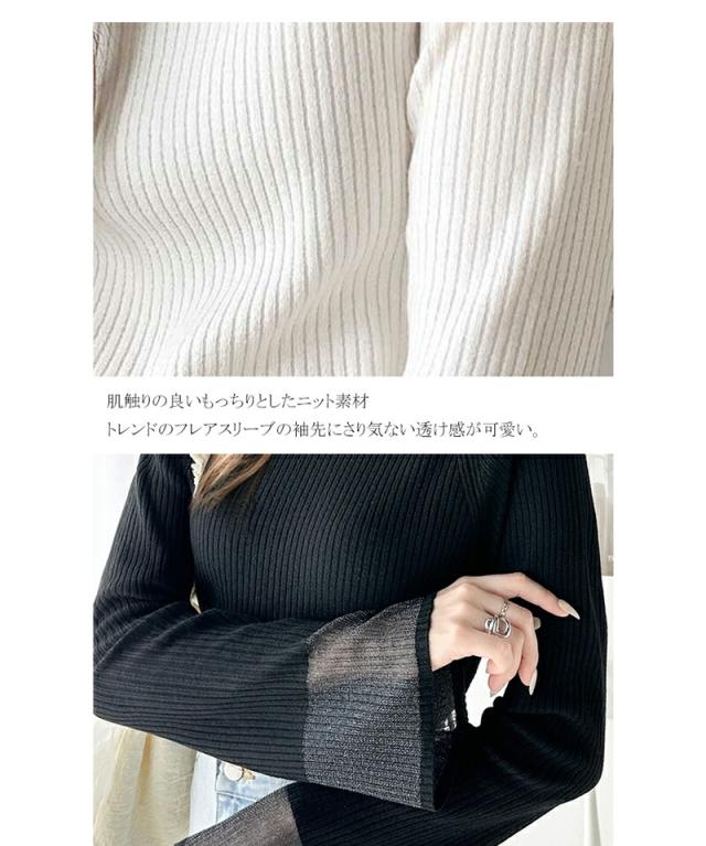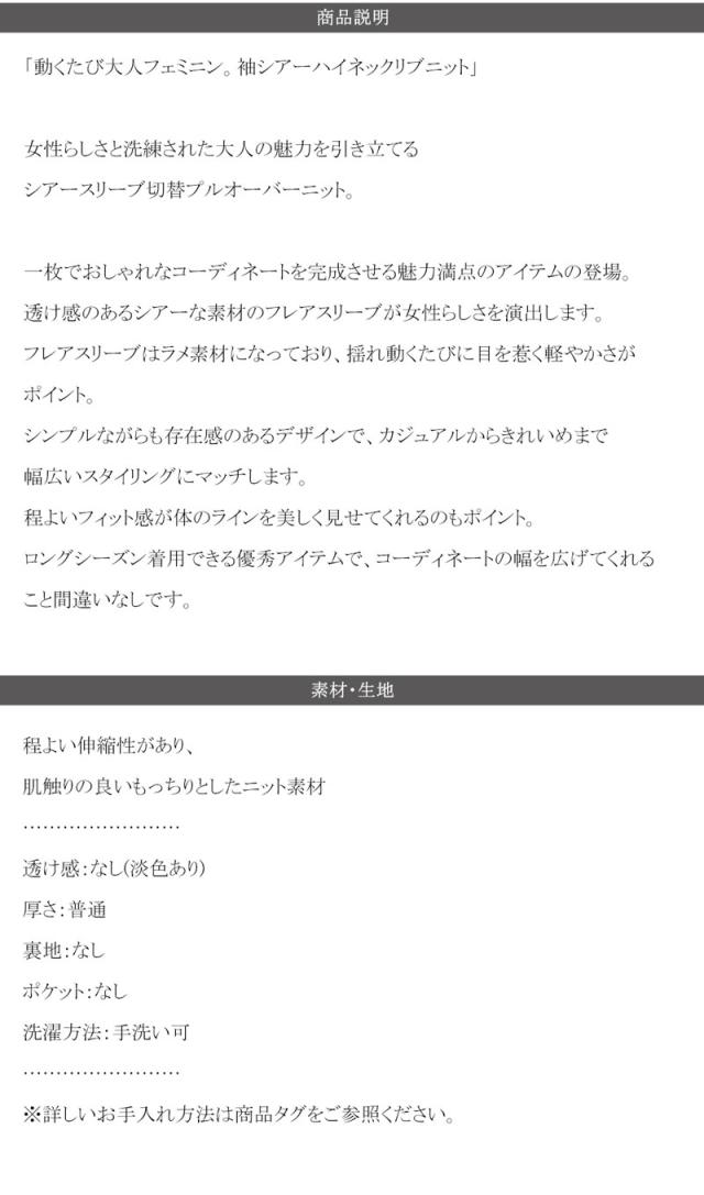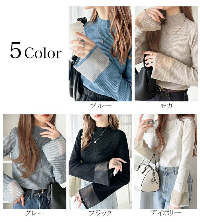 ★動くたび大人フェミニン。袖シアーハイネックリブニット★