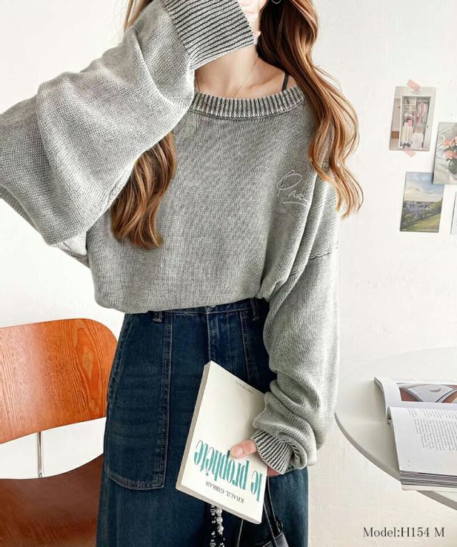 ワンポイント刺繍ピグメント加工プルオーバーニットの登場。