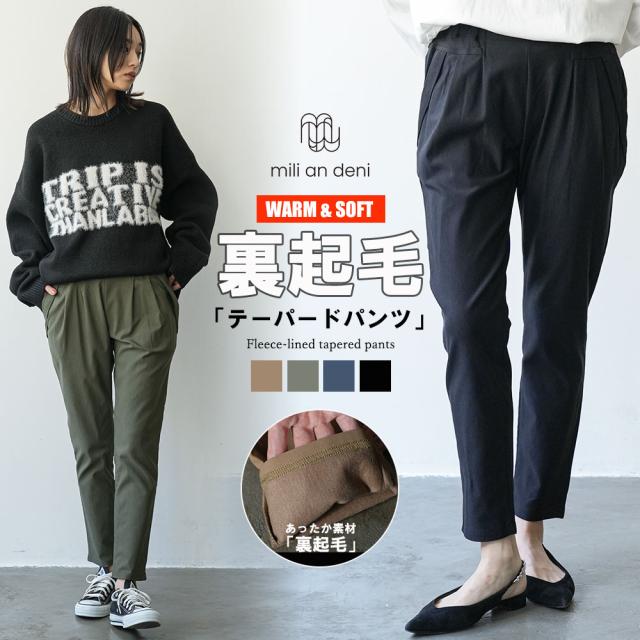 春新作 裏起毛テーパードパンツ ロング丈 M ボトムス レディース 春夏 ミリアンデニ メール便(郵2)対応 p2711