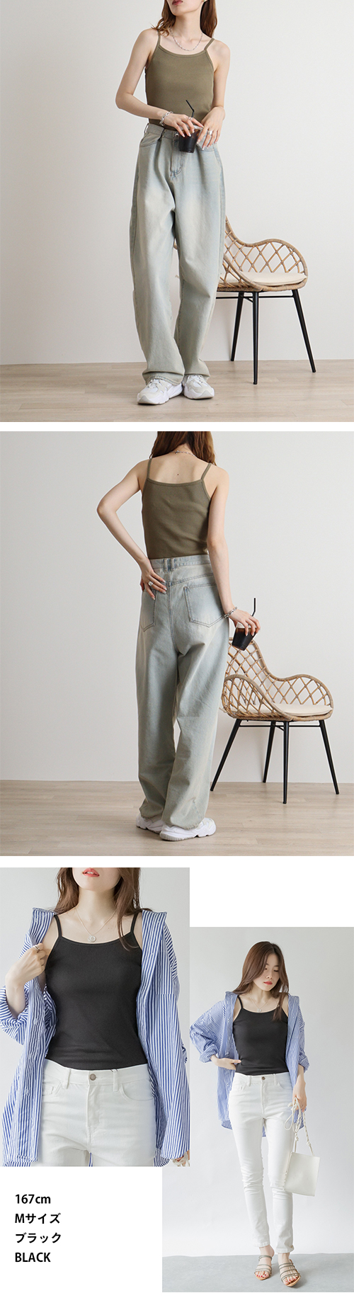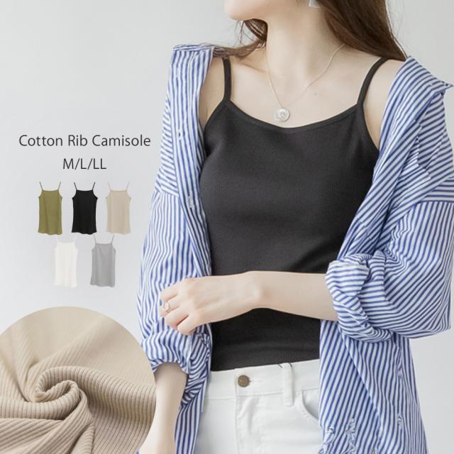 春新作 コットンリブキャミソール カットソー インナー 丸首 重ね着 春コーデ レディース カジュアル M L LL 春服 夏服 韓国ファッション