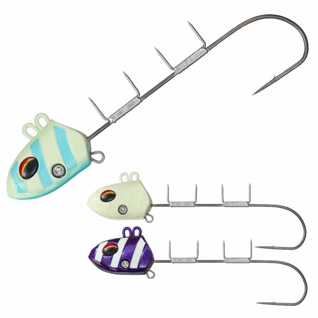 ●アイの高さを抑えることで、抵抗が軽減されフォールスピードが向上しました(スモールアイ仕様)。さらに、ヘッドのゼブラ部分や腹部分にシールを貼ることで、好みのカラーにカスタマイズすることが可能です(シールは別売り)。また、AHシリーズの針とも交換できるHC(HookChange)針交換機能を搭載しています。