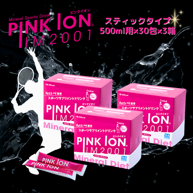 ピンクイオン スティックタイプ 粉末 30包 3箱 スポーツドリンク クエン酸 電解質 水分補給 粉末 アミノ酸 ミネラル テニス 500ml スティック