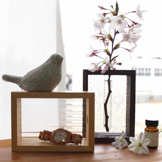レトロな型板ガラスと木製のフレームが組み合わさった一輪挿しです。ガラスの柄は台湾伝統のベゴニア花柄となつかしいストライプ柄の2タイプです。懐かしさを感じさせるガラスの質感と、温かみのある木の素材が、お部屋に穏やかな雰囲気をもたらします。