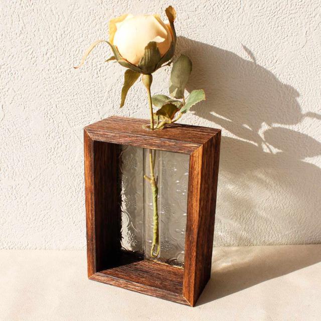 花瓶 レトロガラス 一輪挿し フラワーベース ( 花びん 花器 ベース ガラスベース ウッドベース フラワー 花 飾る レトロ 花入れ ディフューザー ディスプレイ ガラス ガラス製 天然木 木製 天然木製 異素材 )