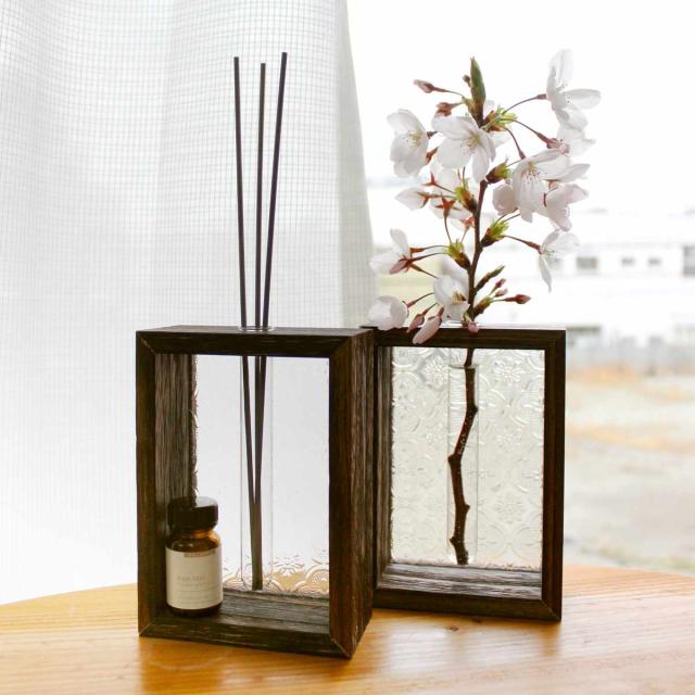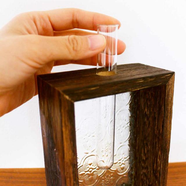 中にガラス管が入っているので、生け花も飾れます。お好みのエッセンシャルオイルを入れて、アロマディフューザーとしても使用可能です。
