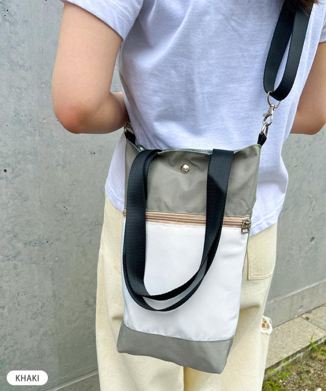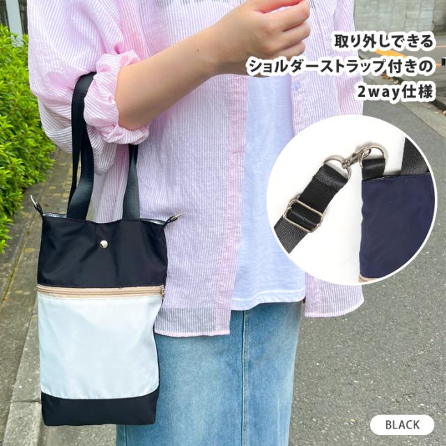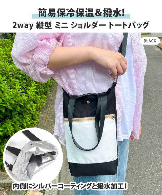新作 保冷 保温 撥水 ファスナーポケット付き 2way 縦型 バイカラー ショルダー トートバッグ ショルダーバッグ ハンドバッグ 保冷バッグ サコッシュ 小さい 軽量 ボトルホルダー 水筒カバー 肩掛け 斜めがけ