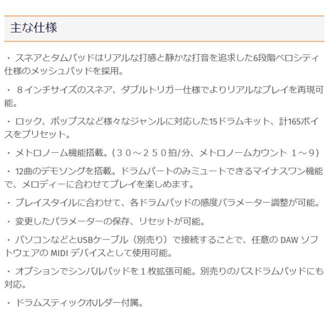 より本格的なドラムプレイを楽しみたい方に最適なデジタルドラムです。