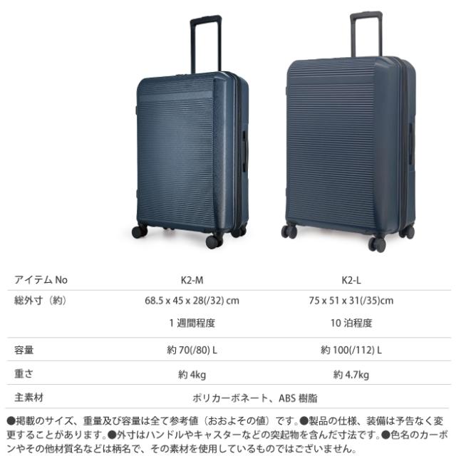 K2は、シンプルなデザインと機能性、実用性を第一に開発したスーツケースです。