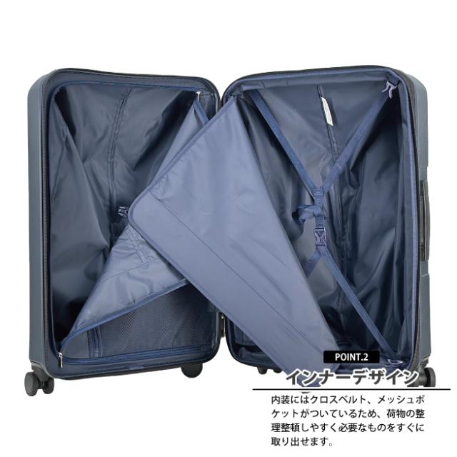 内装にはクロスベルト、メッシュポケットがついているため荷物の整理整頓しやすく必要なものをすぐに取り出せます。 エキスパンダブルで大容量になるので、荷物が増えたときにも安心です。