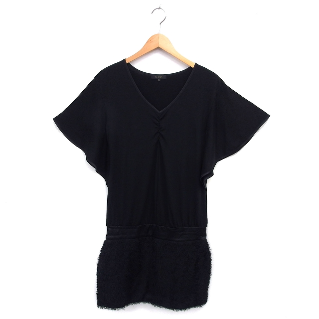 【中古】ルジュール LE JOUR ワンピース タイト ひざ丈 シャギー Vネック ギャザー フレアスリーブ 五分袖 36 黒