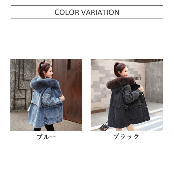 【キーワード】デニムコート 中綿デニムジャケット レディース 秋冬 婦人服 ミディアム丈 カジュアル ファーフード付 アウター 裏ボア 厚手 暖かい オシャレ ボアパーカー ショート丈 長袖 ノーカラー 無地 ポケットあり オーバーサイズ コーデ 暖か バイカラー ふわふわ カジュアル フード付き もこもこ シンプル 防寒 ロング ゆったり 50代 30代 40代 20代 ママ プレゼント 防風 軽量 トップス 安い