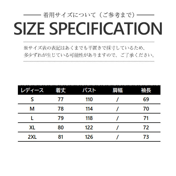 ※基本的に、XL・LL・2Lのサイズはすべて同じサイズです。