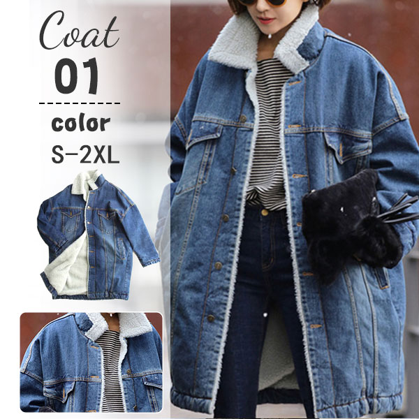 デニムジャケット Gジャン レディース ロング丈 ボア ブルゾン 裏ボア トップス アウター コート ボア アウトドア 無地 シンプル ジージャン