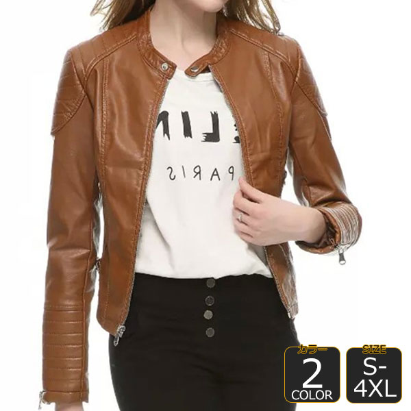 ライダース ジャケット レディース 合皮 シングルライダース アウター フェイクレザー バイカー ブルゾン レザージャケット シングル