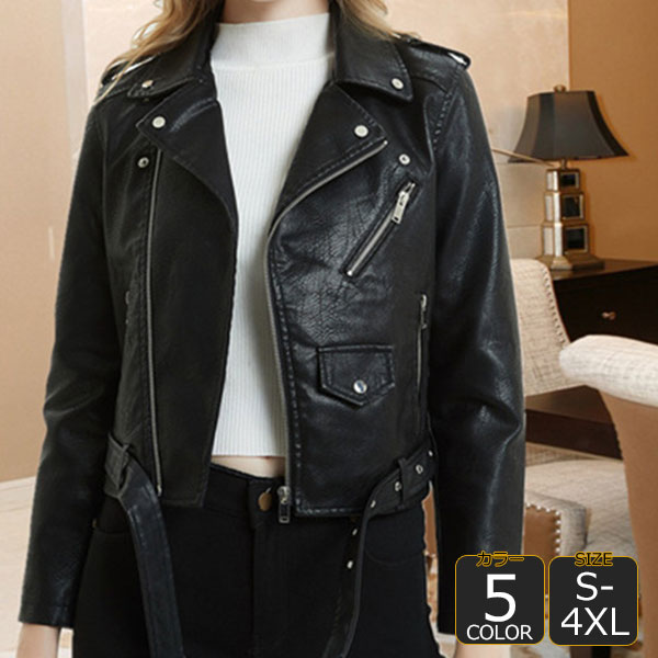 レディース ジャケット 革ジャン ライダースジャケット ジャンパー バイク レザージャケット シングル PU革 レザー 革コート 大きいサイズ