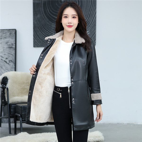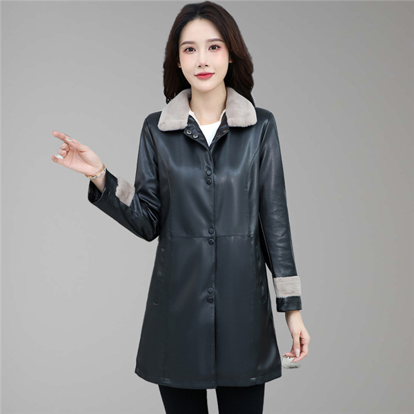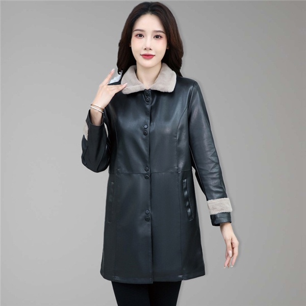 素材は落ち着いた艶と皺が上品なフェイクレザー。