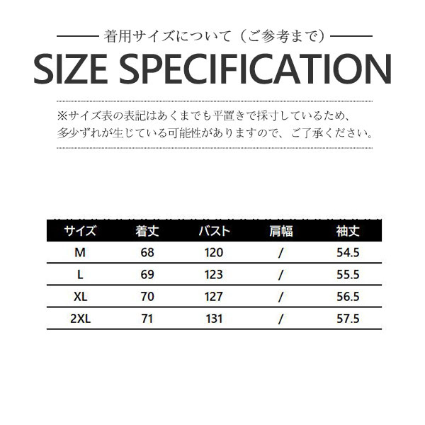 ※基本的に、XL・LL・2Lのサイズはすべて同じサイズです。