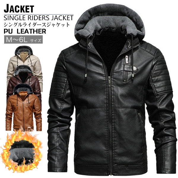 ポイント超超祭 ライダースジャケット メンズ レザージャケット ボア 裏起毛 バイクジャケット フード付 革ジャン PU きれいめ 秋冬 防風 防寒 アウター