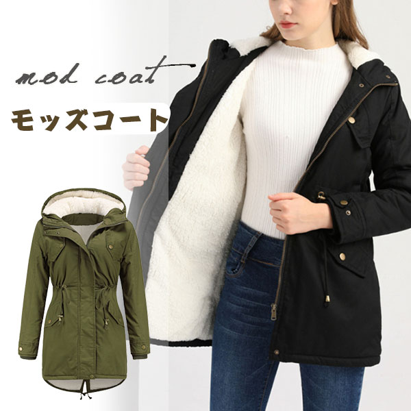 ポイント超超祭利用可 ミリタリーコート レディース 中綿 防寒着 モッズコート 裏ボア アウター ジャンパー ブルゾン フード付き ゆったり 防寒 あったか 羽織り