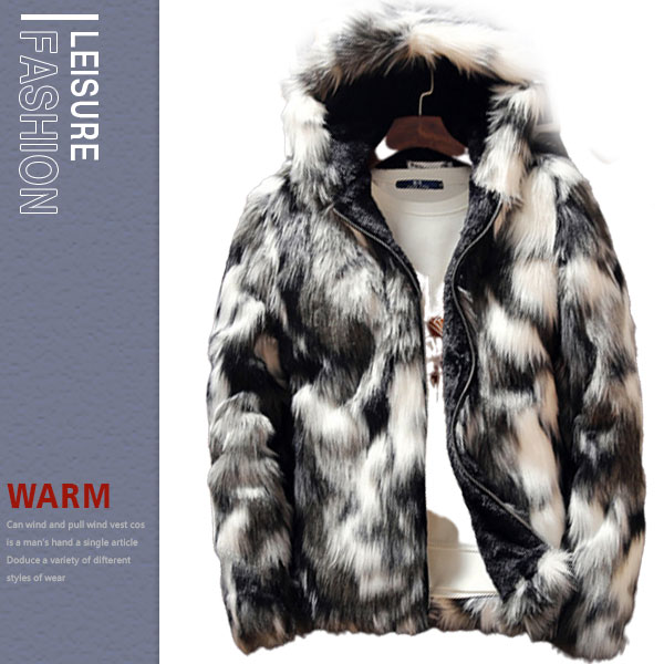 人気 毛皮コート ファーコート メンズ ショートコート アウター ジャケット フード付き 裏起毛 フェイクファー モコモコ 暖かい 防寒 高級感