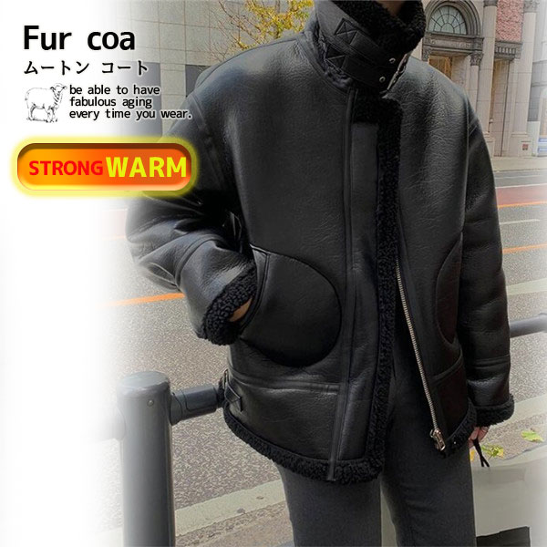 ポイント超超祭利用可 ムートンコート ボアジャケット メンズ 毛皮コート ハイネック ライダース フェイクムートン ブルゾン ファーコート 裏起毛 スエード あったか 防寒