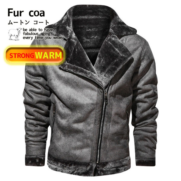 ポイント超超祭利用可 ムートンコート ジャケット レザージャケット ミリタリー ライダースジャケット メンズ 革ジャン 裏起毛 毛皮コート 防風 バイク ブルゾン バイカー
