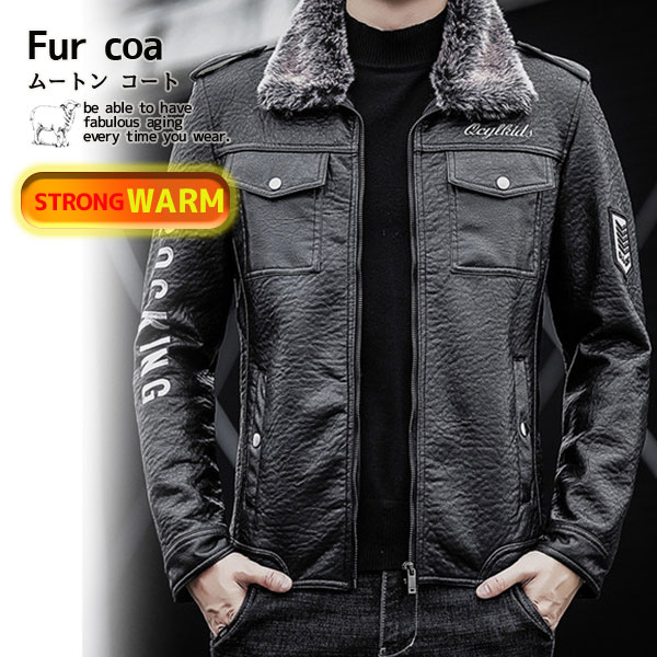 ポイント超超祭利用可 ライダースジャケット メンズ ムートンコート ジャケット 革ジャン ボアジャケット スエード 裏起毛 毛皮コート 防風 ブルゾン B系 ブルゾン 冬服