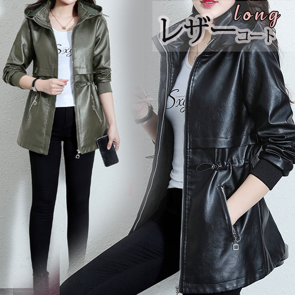 店長イチオシ レザーコート ロングコート スプリングコート ライダース 革ジャン レディース アウター 合革 バイク PU 上質 無地 防寒 防風 フェイクレザー