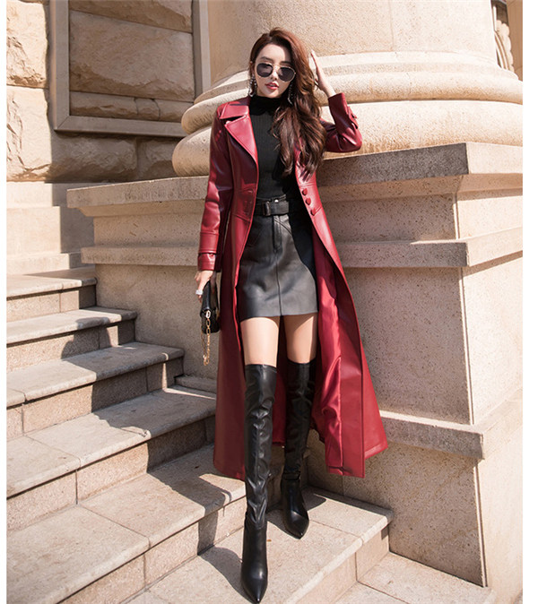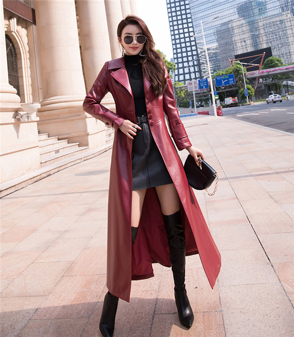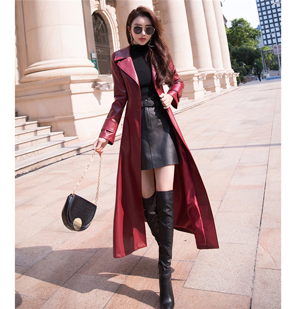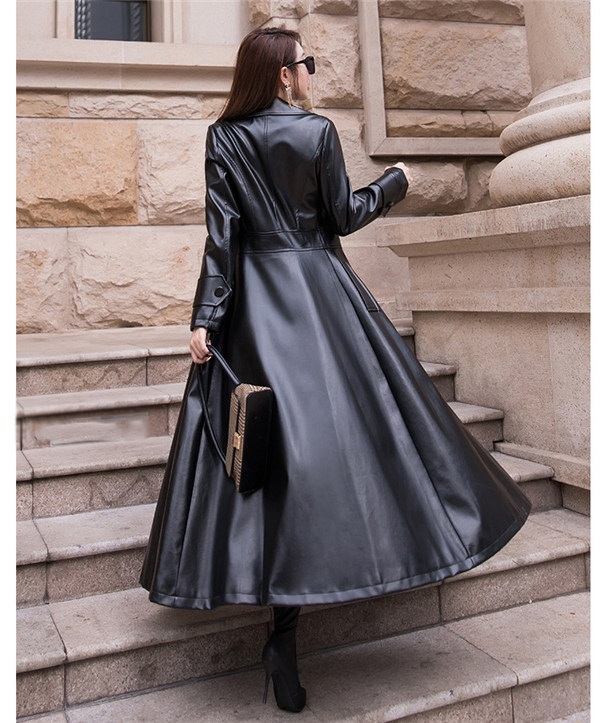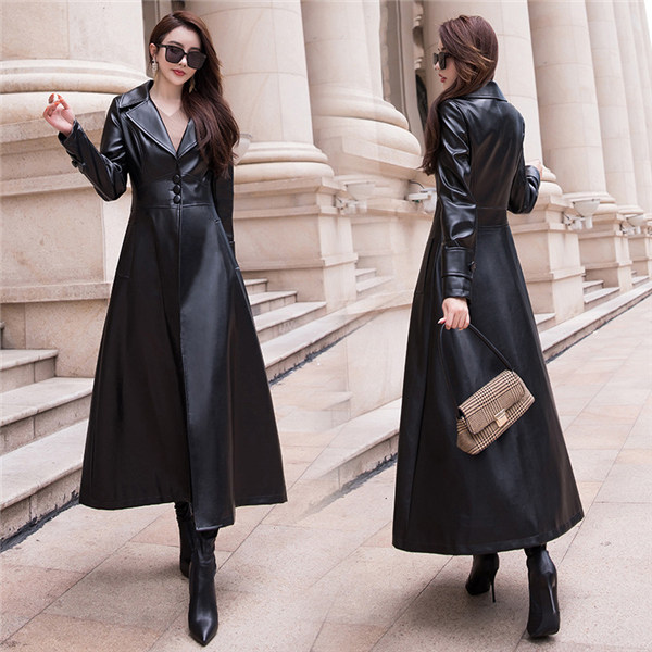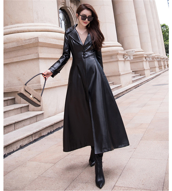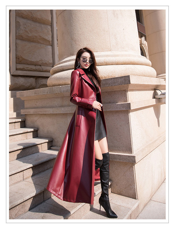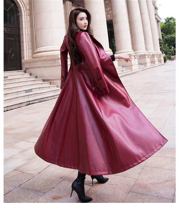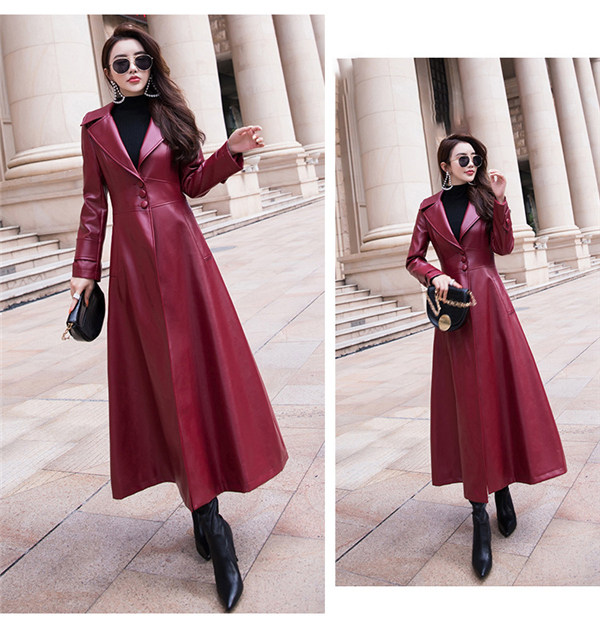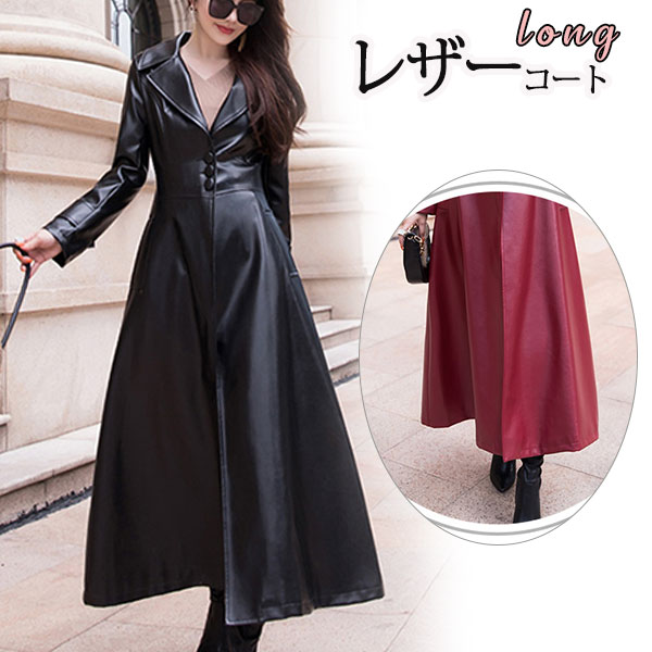 セール中 レザーコート ロングコート スプリングコート ライダース 革ジャン レディース アウター 合革 バイク PU 上質 無地 防寒 防風 フェイクレザー