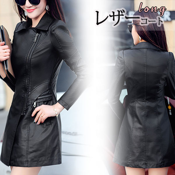 スマプレ超祭り レザーコート ロングコート スプリングコート ライダース 革ジャン レディース アウター 合革 バイク PU 上質 無地 防寒 防風 フェイクレザー