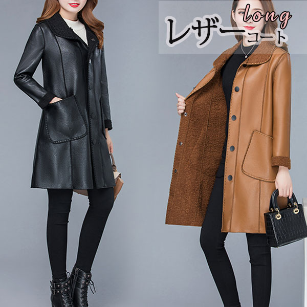数量限定 レザーコート ロングコート スプリングコート ライダース 革ジャン レディース アウター 合革 バイク PU 上質 無地 防寒 防風 フェイクレザー