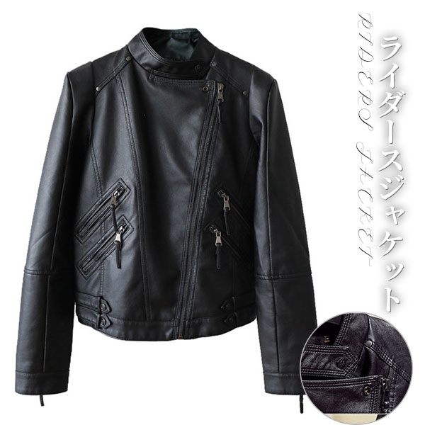 限定価格 レザージャケット レディース ライダースジャケット ジャケット 革ジャン 皮ジャン デッキジャケット PU レザー アウター 羽織り 人気 秋服