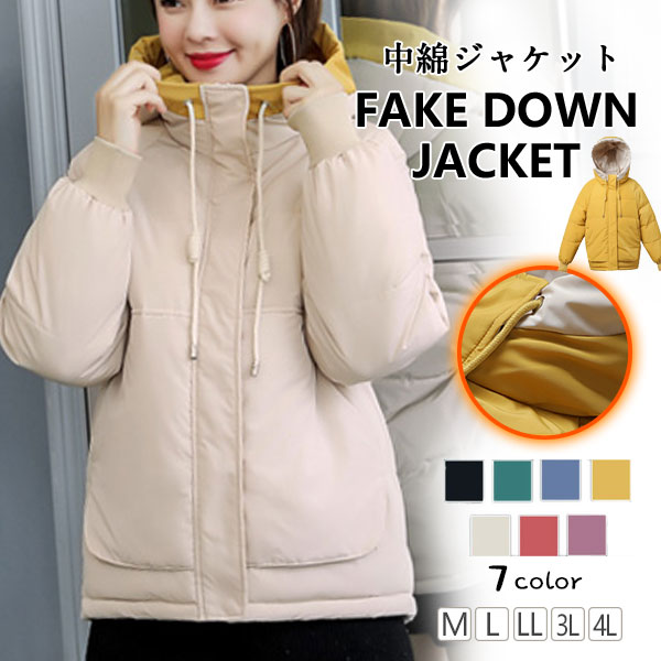 中綿ジャケット レディース フード付き アウター 秋冬 ショート丈 シンプル ダウン風 カジュアル 軽量 きれいめ 無地 暖かい 安い オフィス