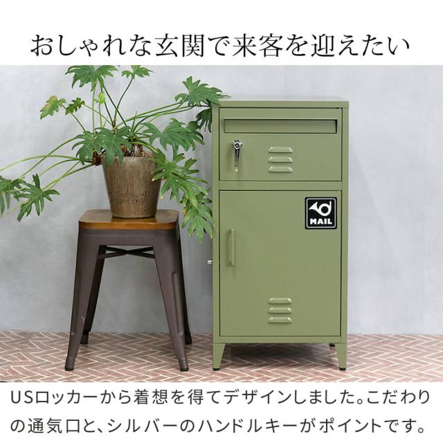 このビンテージスタイルの宅配ボックスは、玄関に置くだけでおしゃれな雰囲気を演出します。