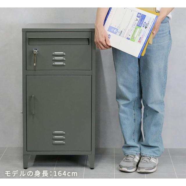 本体サイズ: 幅 44cm × 奥行 37.5cm × 高さ 84cm(アジャスター含む)ポスト: 投函口 幅 34.5cm × 高さ 3.3cm、内寸 幅 35cm × 奥行 31.5cm × 高さ 18.5cm
