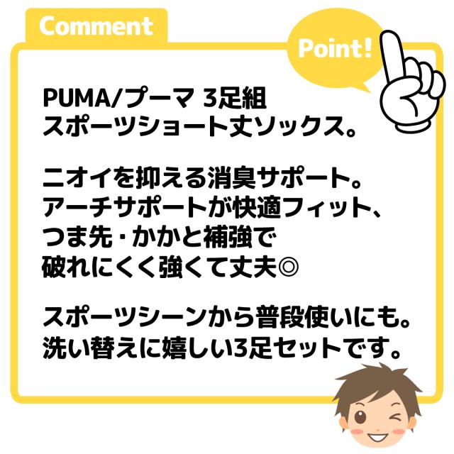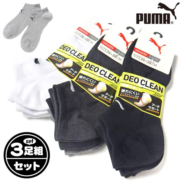 【送料無料】【大きいサイズ】3足組セット 紳士 メンズ ショート丈 ソックス スポーツ 靴下 PUMA/プーマ 消臭 補強 アーチサポート L 26-28cm yg-2548【メール便対応】