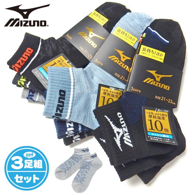 【送料無料】3足組セット 男児 ジュニア ショート丈 ソックス 靴下 MIZUNO/ミズノ つま先かかと補強 甲メッシュ 長持ち設計 21-23cm 23-25cm yg-2532【メール便対応】